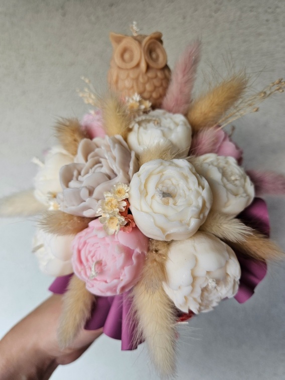 Flowerbox ze Świec Sojowych – Bukiet z sową🦉