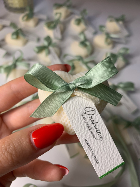 Podaruj Im wyjątkowy upominek - eleganką świece sojową, przyozdobioną subtelną wstążką, której kolor możesz dobrać zgodnie z motywem Twojej uroczystości. Do świeczki dołączona jest stylowa zawieszka na eleganckim papierze, na którym umieścimy Twój napis, np. imiona, datę, krótką dedykację czy inne słowa, które uczynią upominek jeszcze bardziej osobistym i wyjątkowym.